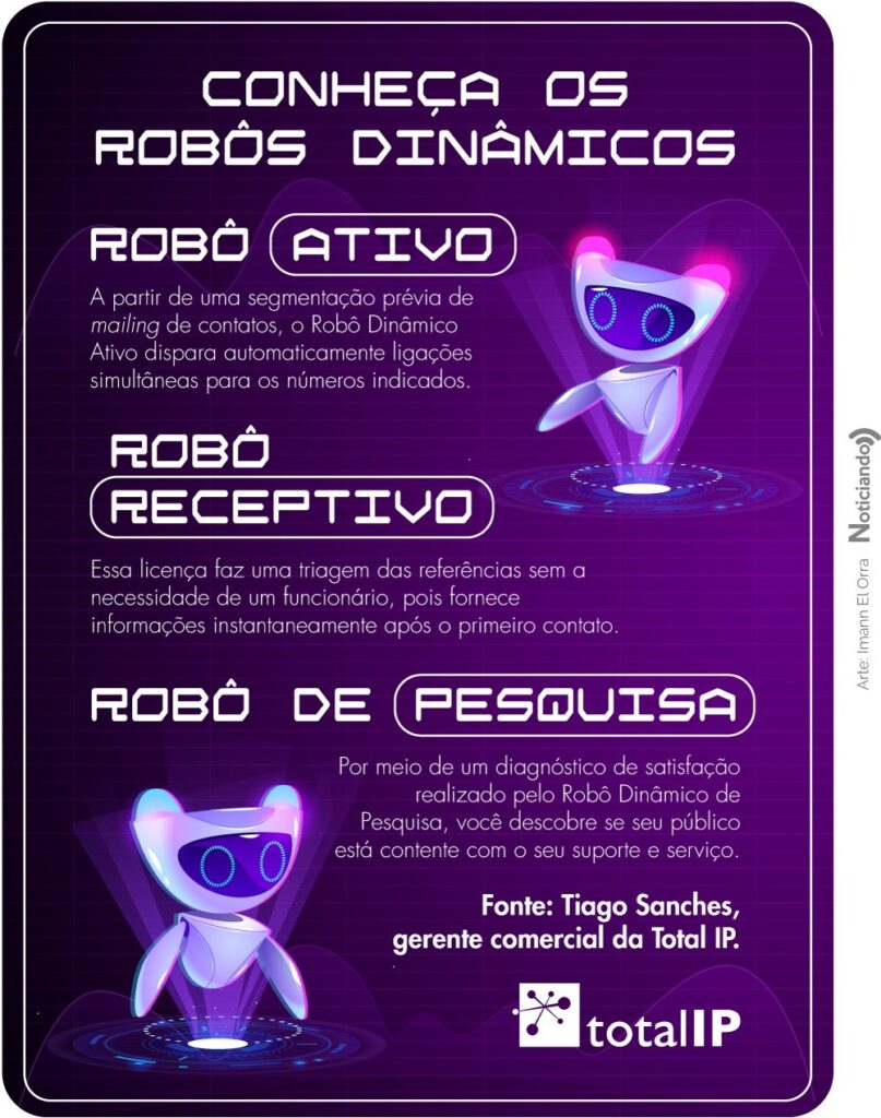 Como exposto, os Robôs Dinâmicos são responsáveis por potencializar conexões, facilitando o contato e fortalecendo o suporte da corporação. “Entre as suas funcionalidades, é possível destacar os relatórios de acompanhamento de entrada de ligações e rastreamento das mesmas, bem como a visualização do ponto de abandono do atendimento. Tudo isso com um dashboard intuitivo para você conseguir entender todos os erros e acertos”, expõe o gerente comercial da Total IP+IA.